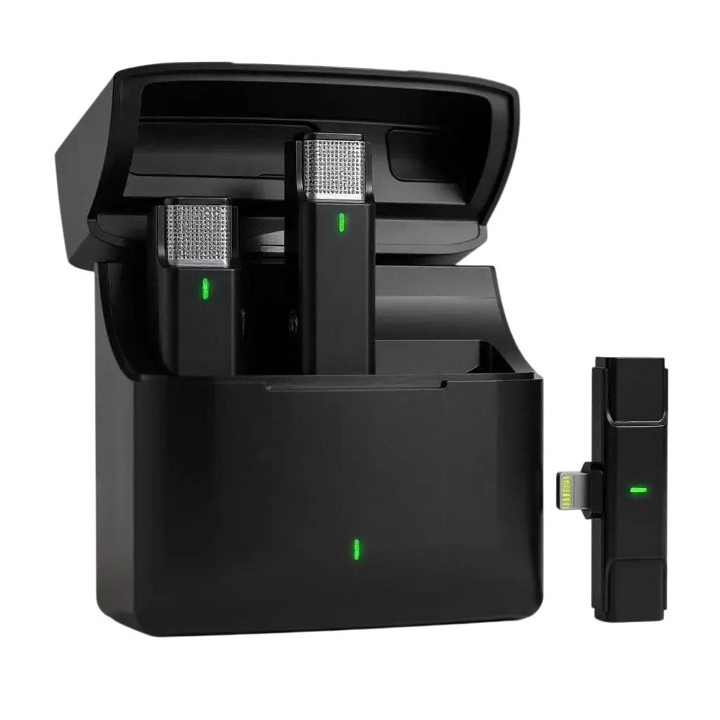 У комплекті поставляється портативний кейс-зарядка, який забезпечує зручне зберігання та продовжує час автономної роботи мікрофона. Легка вага і компактний дизайн роблять пристрій зручним для використання в дорозі.