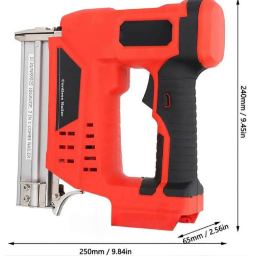 Акумуляторний електростеплер F30 — універсальний інструмент для професіоналів і домашніх майстрів. Він дозволяє швидко й акуратно забивати цвяхи довжиною до 30 мм у дерево, фанеру, ДСП, МДФ чи інші матеріали. Завдяки акумулятору на 18 В ємністю 2,0 А·ч ви зможете працювати тривалий час без обмежень у просторі.
