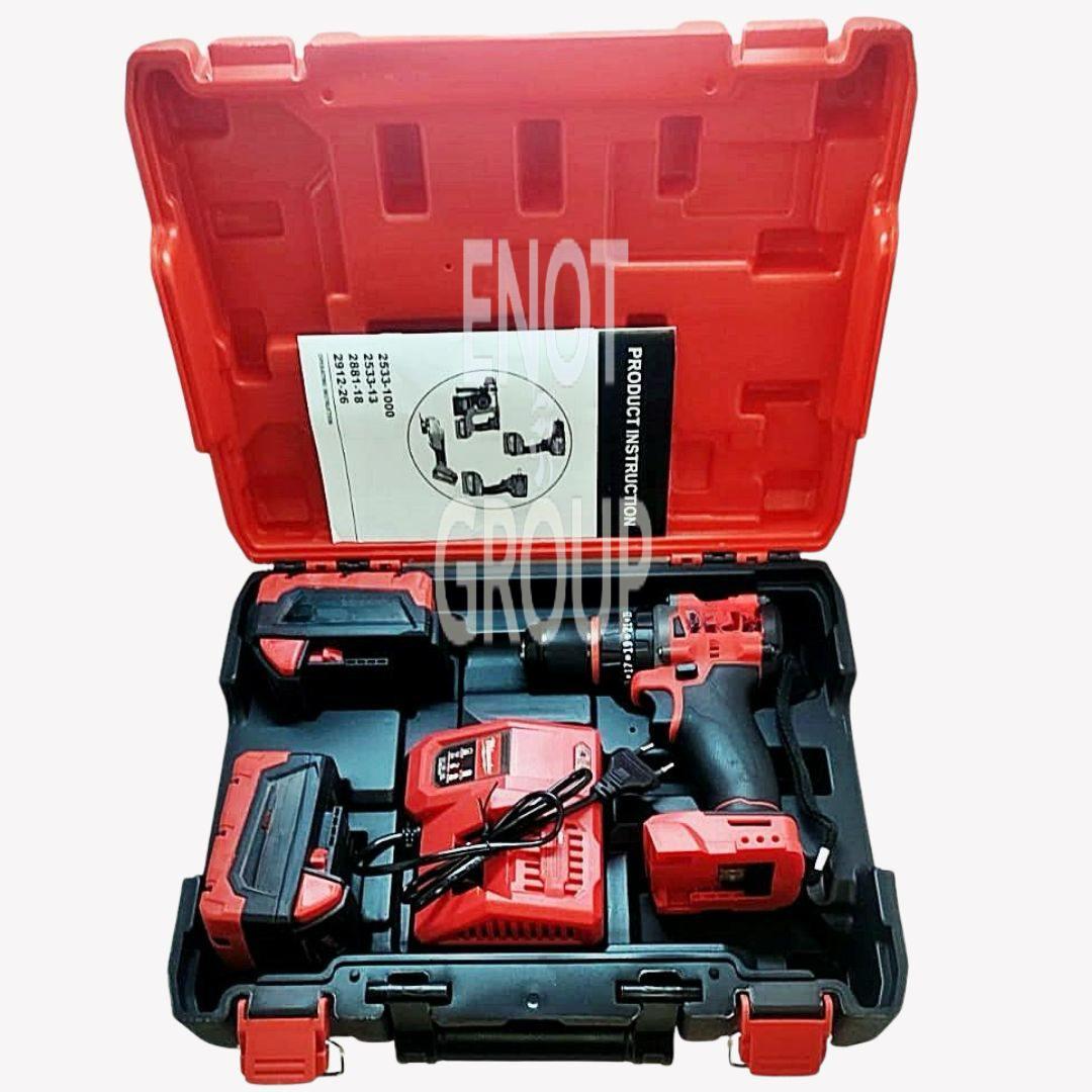 Потужний і зручний акумуляторний шуруповерт 36V — ідеальний вибір для монтажних, будівельних та ремонтних робіт. Завдяки двом літій-іонним акумуляторам ви можете працювати без простою: поки один акумулятор у роботі, інший швидко заряджається у комплектному зарядному пристрої.