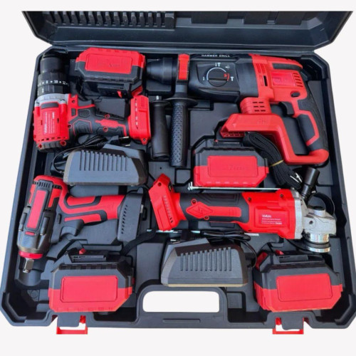 Професійний набір акумуляторних інструментів 4-в-1 36V — це універсальний комплект, створений для виконання широкого спектру завдань у будівництві, ремонті та домашньому господарстві. Комплект включає акумуляторний шуруповерт, ударний гайковерт, кутову шліфувальну машину (болгарку) та перфоратор, які відзначаються високою продуктивністю, ергономікою та довготривалою автономною роботою без дротів.