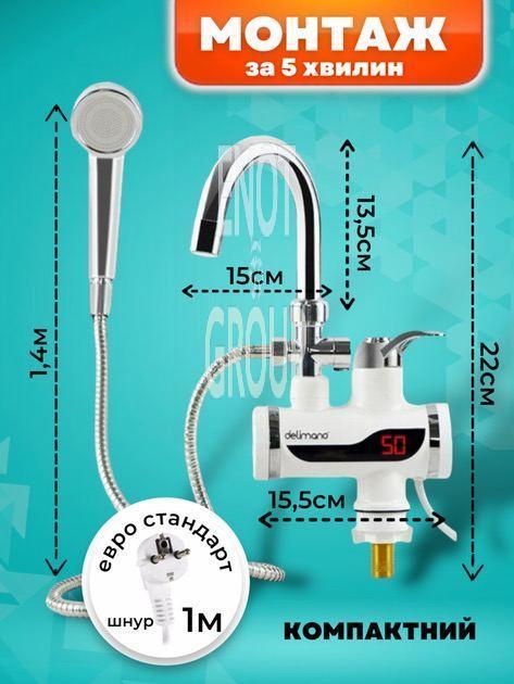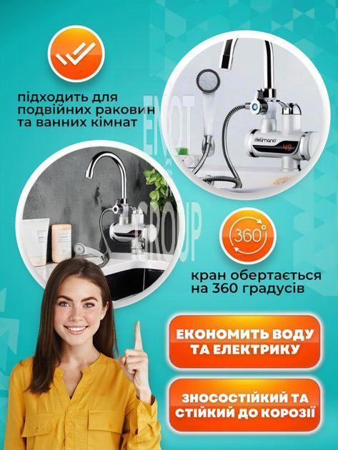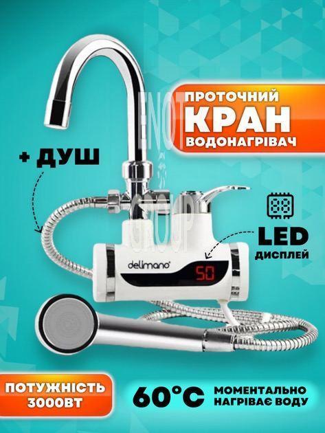 Проточний електричний кран-водонагрівач Delimano Water Heater 3 кВт з душем і LCD екраном — миттєве гаряче водопостачання!