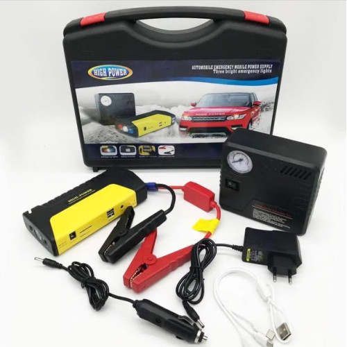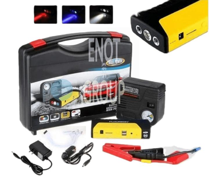 Це потужне пуско-зарядне пристрій з вбудованим компресором, яке стане незамінним помічником для водіїв і мандрівників. Завдяки великій ємності акумулятора 50800 мАч та наявності компресора, цей пристрій дозволяє запускати автомобіль навіть при повністю розрядженому акумуляторі, а також надувати шини або інші предмети, що потребують підкачки.
