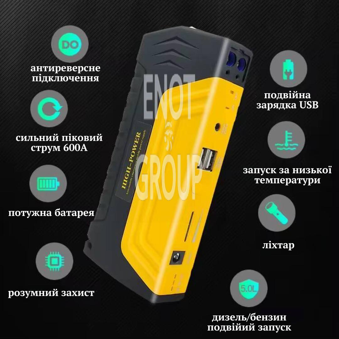 - Пусковий струм 50800 mAh – забезпечує запуск двигуна будь-якого автомобіля (до 6.0 л) без зусиль.