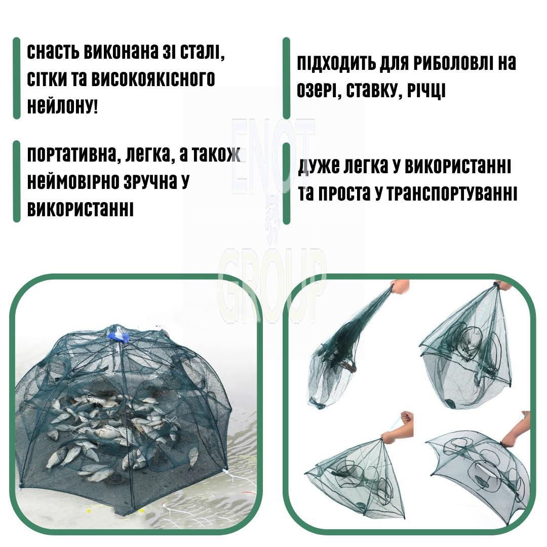 Ця сітка допоможе вам легко та швидко організувати успішну риболовлю чи вилов раків. Відмінний варіант для тих, хто цінує якість та ефективність.