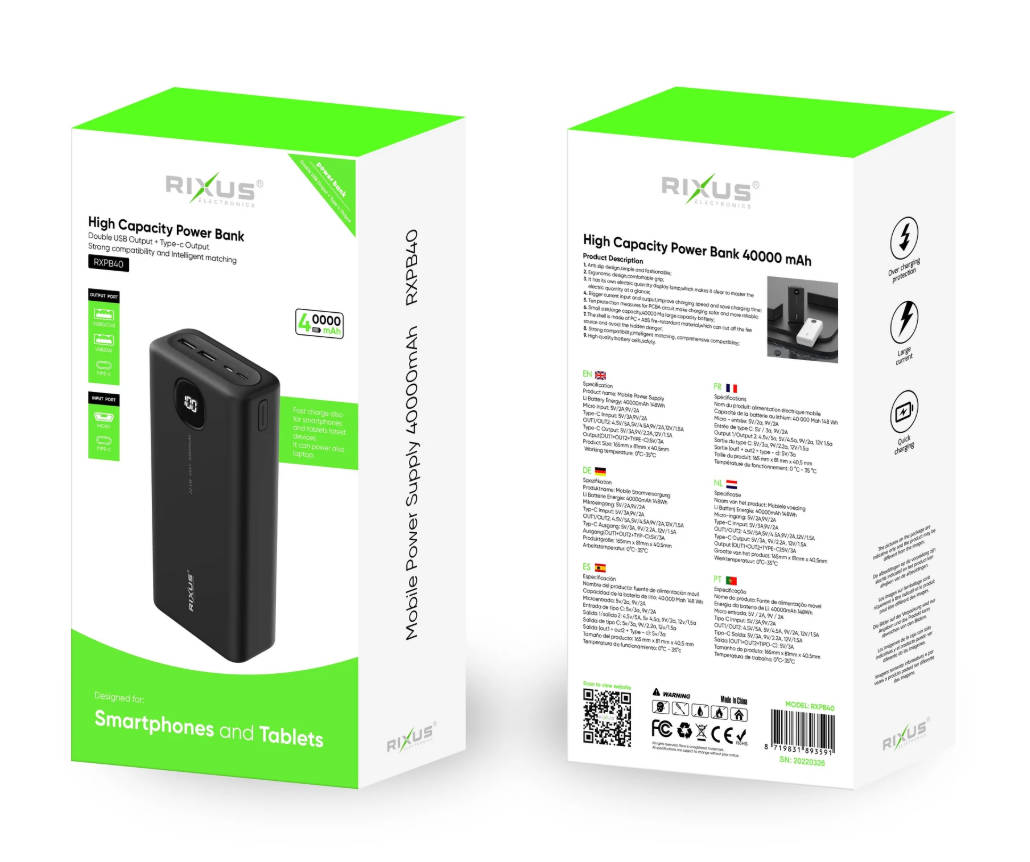 RIXUS RXPB40 надійний павербанк для тривалої роботи 40000 mAh