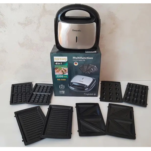 Rainberg RB-5408 (4 в 1) — це потужна сендвічниця 2200W, яка дозволить готувати не тільки смачні сендвічі, а й гриль, вафлі та печиво. З нею ваші сніданки та перекуси стануть швидкими, корисними та неймовірно апетитними!