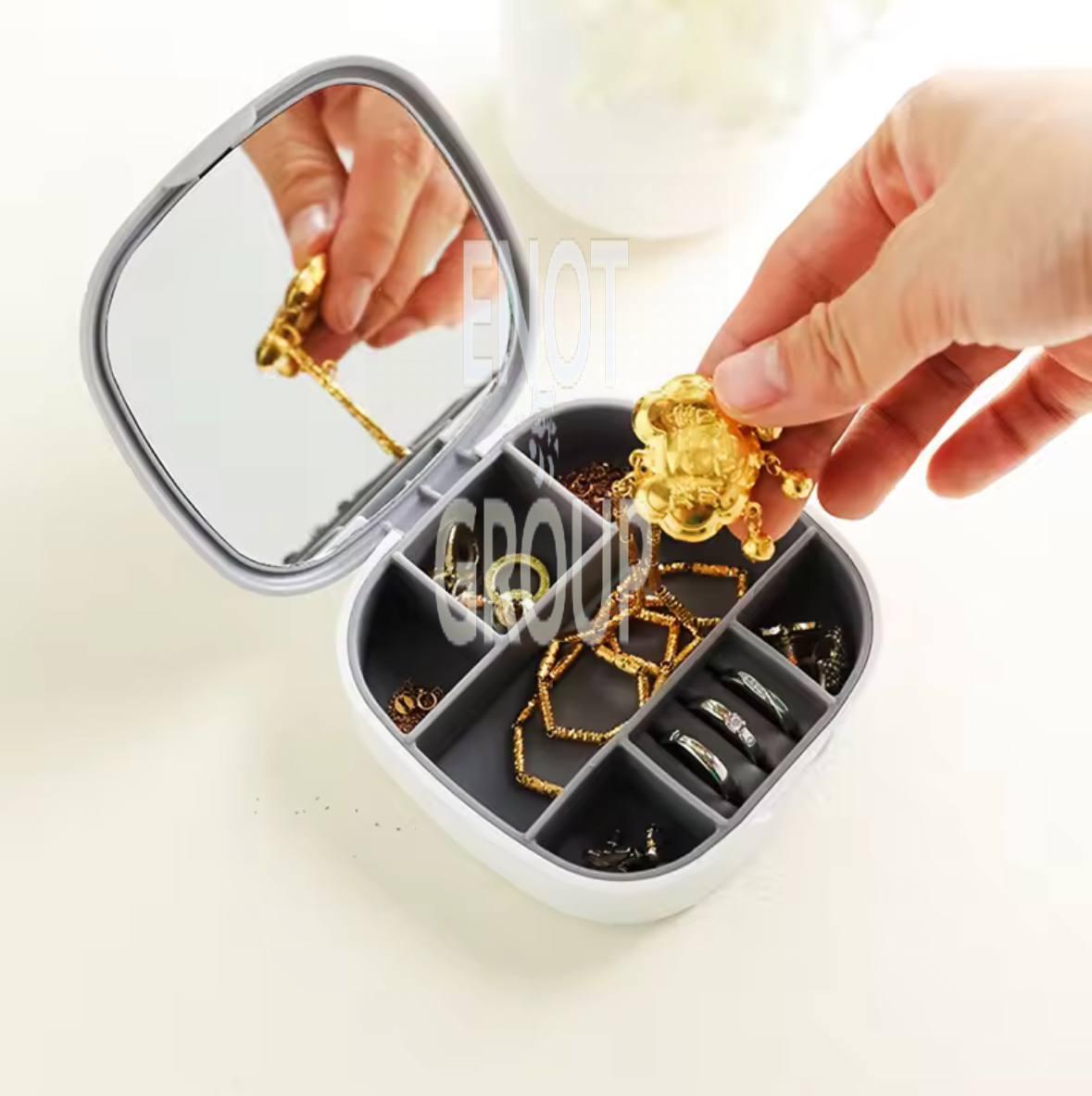 Зберігайте свої улюблені прикраси у зручному органайзері зі стильним дзеркалом. Завдяки 7 відділенням, ви зможете легко організувати свої аксесуари, зберігаючи їх у порядку та безпеці.