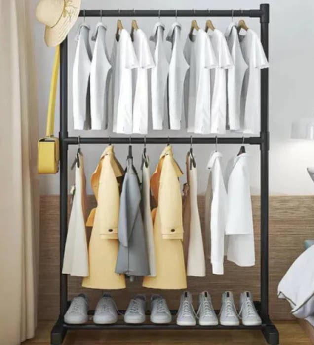 Ця напольна вішалка для одягу — ідеальне рішення для підтримки порядку в будь-якому приміщенні. Вона гармонійно поєднує функціональність і стиль, підходить для передпокою, спальні, гардеробної чи офісу. Міцний металевий каркас та практичний дизайн вішалки гарантують її довговічність, а стильний вигляд стане чудовим доповненням вашого інтер'єру.