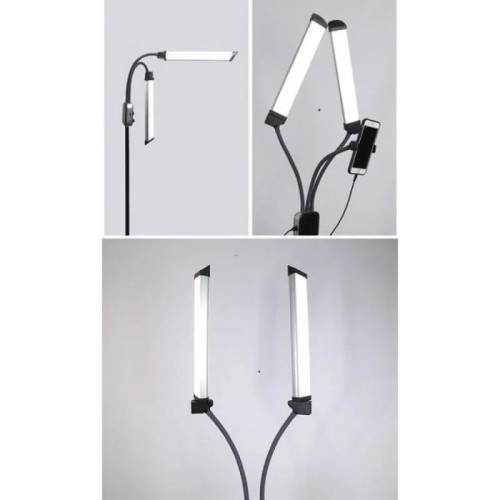 Ця модель ідеально підійде для студійної зйомки, відеоблогінгу, стрімів та створення професійного контенту. У комплект входять два універсальні тримачі, що дозволяють легко встановити лампу в потрібному положенні та адаптувати її під різні сценарії роботи.
