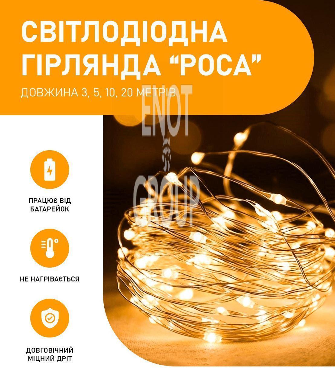 Світлодіодна LED гірлянда-нитка Краплі роси на батарейках — універсальна прикраса для будь-якого свята
