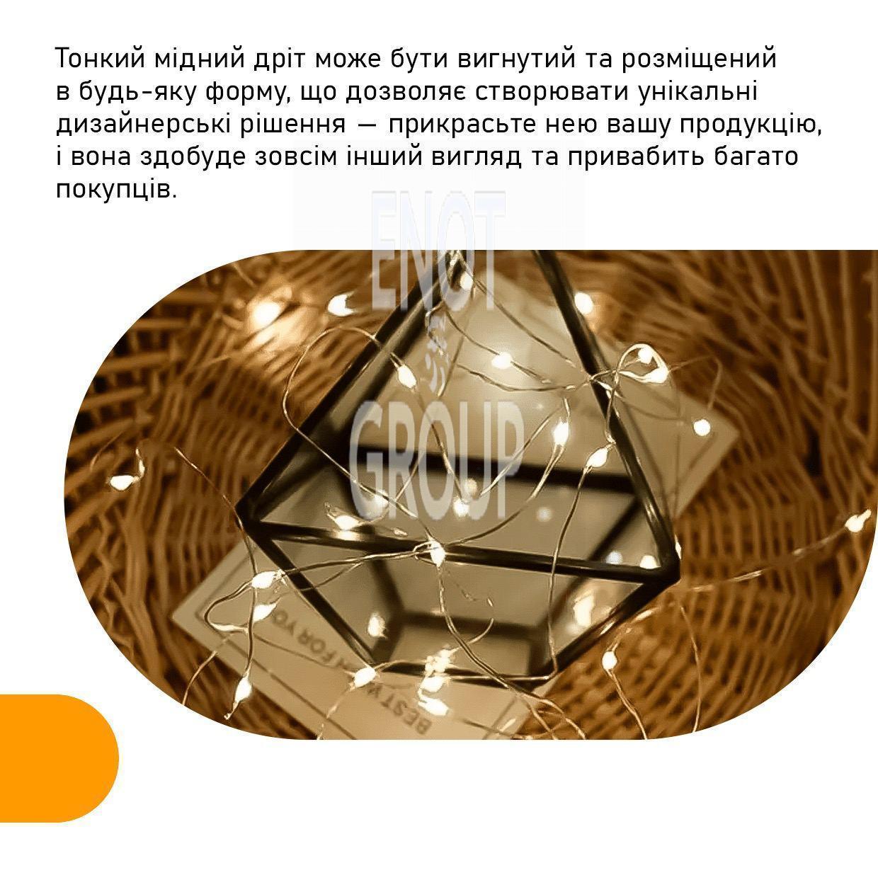 - Портативність: Завдяки батарейкам гірлянду можна використовувати як всередині приміщень, так і на вулиці.