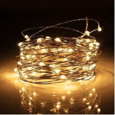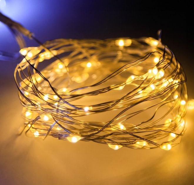 Тонкий гнучкий мідний дріт з яскравими LED-діодами виглядає як крапельки роси, що мерехтять у повітрі, даруючи атмосферу тепла і затишку.