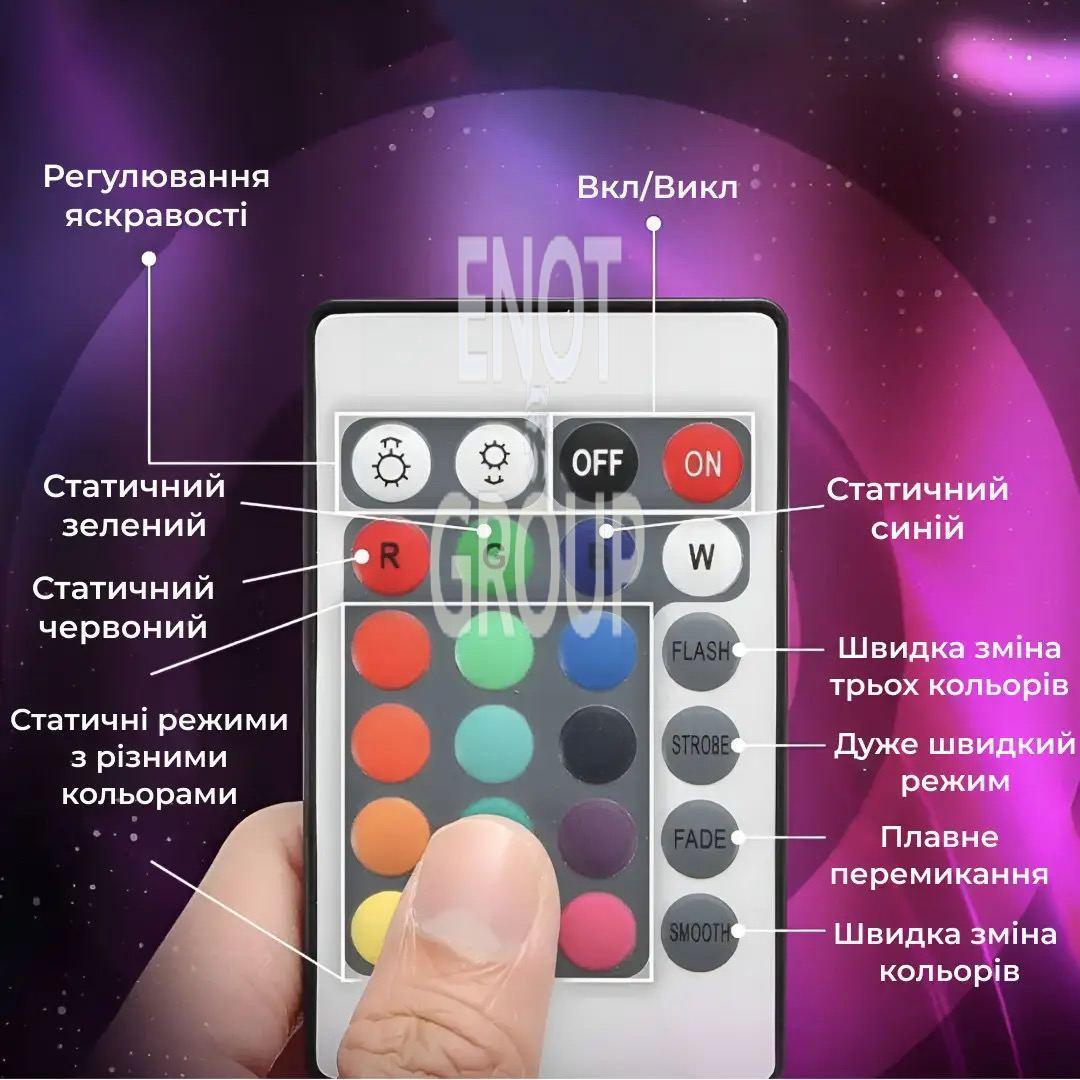 - Зручне керування: Пульт дозволяє змінювати режими та налаштовувати яскравість без необхідності підходити до стрічки.