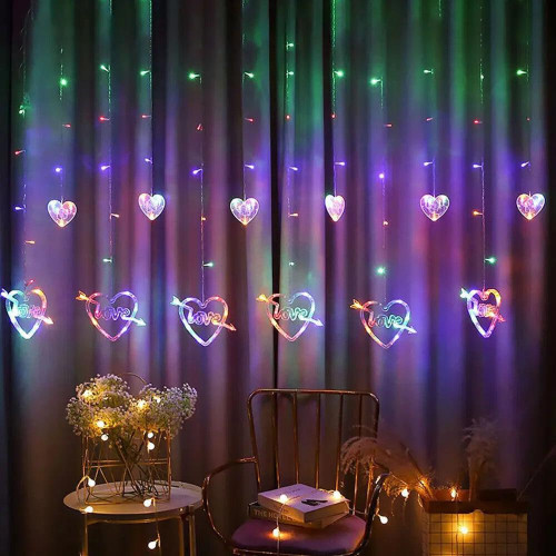 Святкова світлодіодна гірлянда-штора LOVE з сердечками 12 підвісів, тепле біле сяйво, декоративна штора для дому, свят і фотозони