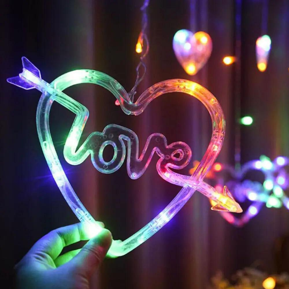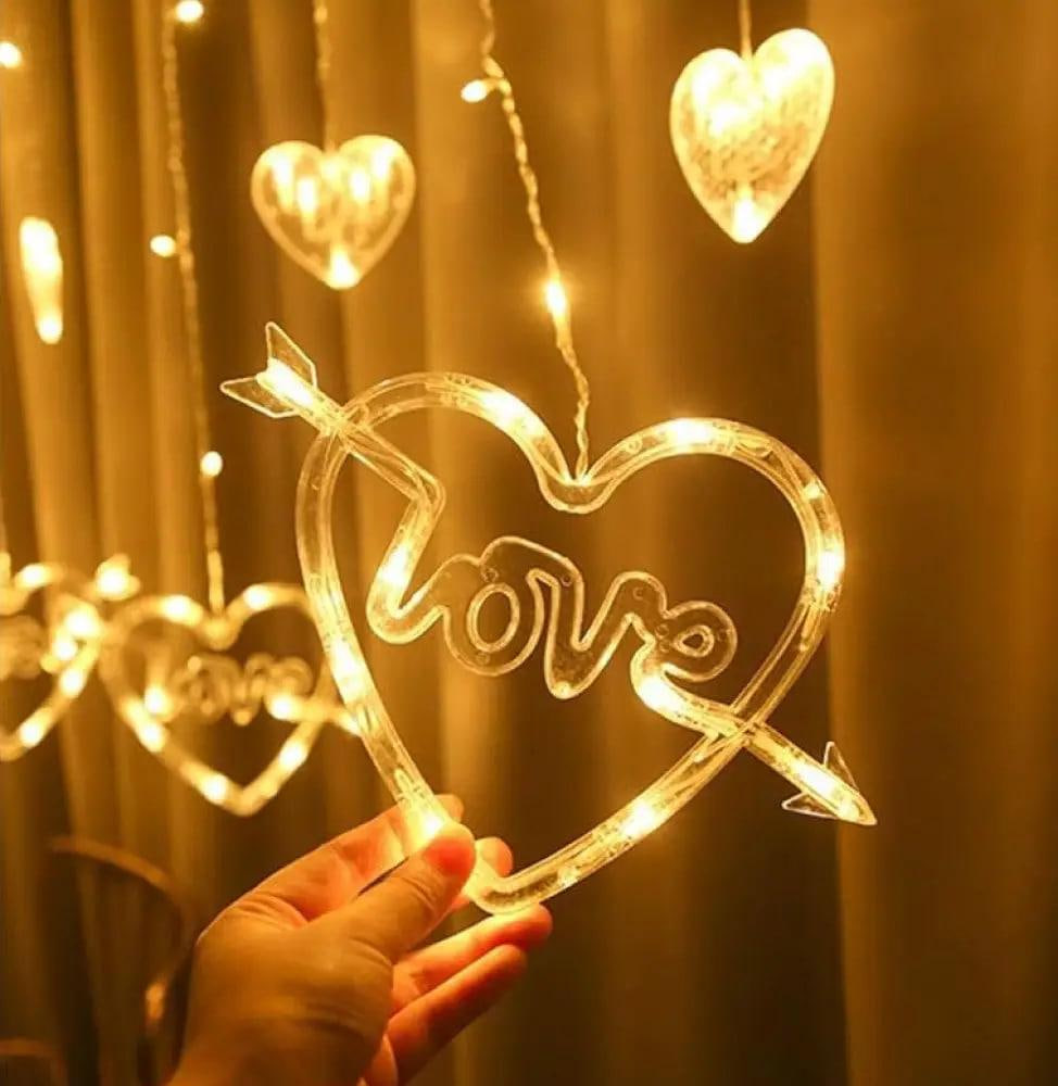 Перетворіть будь-який простір на романтичну казку з ніжною світлодіодною гірляндою-шторою “LOVE з сердечками”. Вона складається з 12 сяючих фігур у формі сердець, які спадають легкими світловими лініями, створюючи ефект ніжного сяйва. У центрі композиції розташований напис LOVE, який м’яко підсвічується, наповнюючи простір теплом і гармонією.