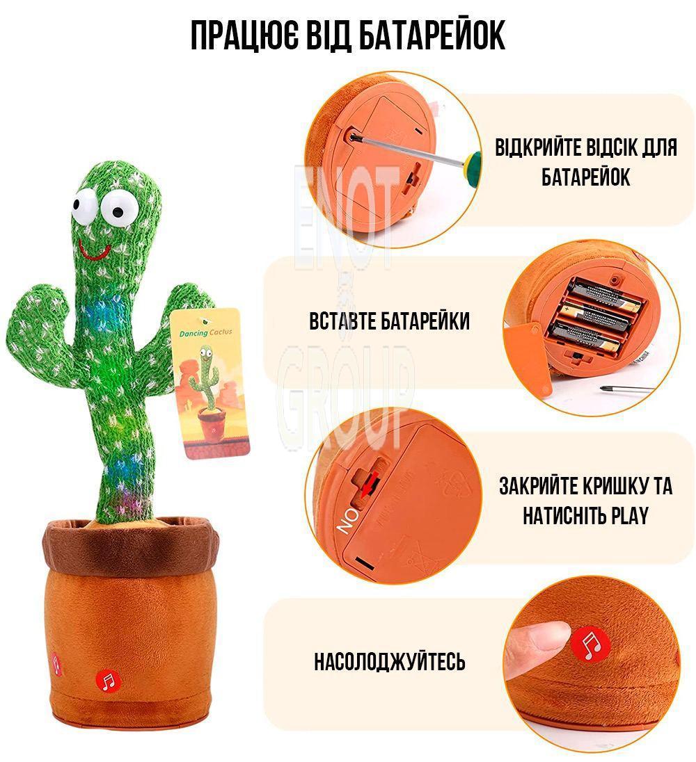 - Зручне керування: Танцюючий кактус легко активується одним натисканням кнопки.