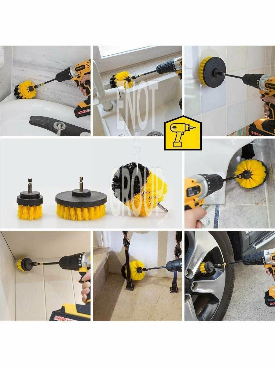 Цей набір щіток для шуруповерта допоможе легко видалити навіть найскладніші забруднення. Використовуйте їх для чищення плитки, сантехніки, автомобільних дисків, килимів та інших поверхонь.