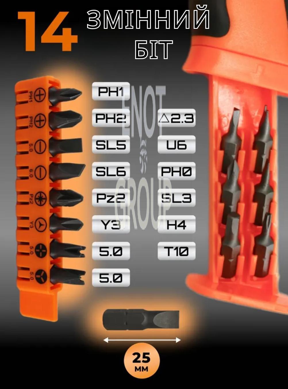 Універсальна викрутка 14-в-1 з храповим механізмом – зручний і міцний інструмент для професіоналів