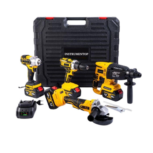 Універсальний набір акумуляторного електроінструмента 4 в 1 Instrumentop шуруповерт, гайковерт, болгарка та перфоратор з літій-іонним акумулятором 48V 6.0Ah для дому та майстерні