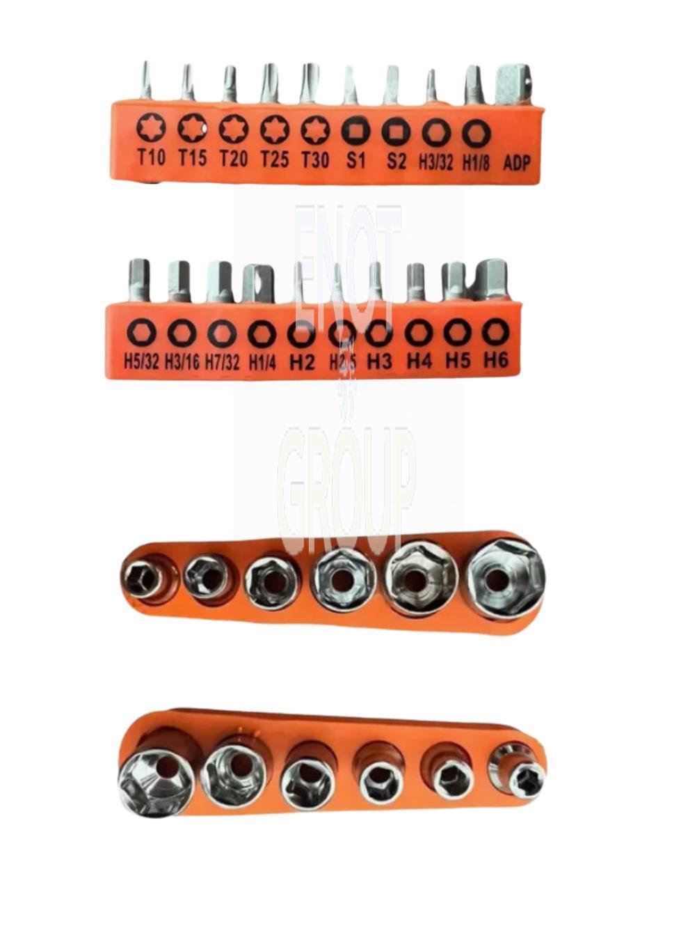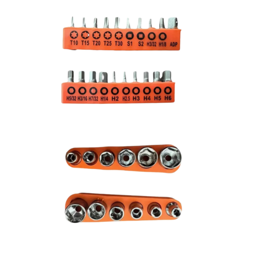3. Якість матеріалів: Всі біти та головки виготовлені з високоміцної сталі, що забезпечує тривалий термін служби та витривалість до зношення. Ви можете бути впевнені в надійності цього набору.