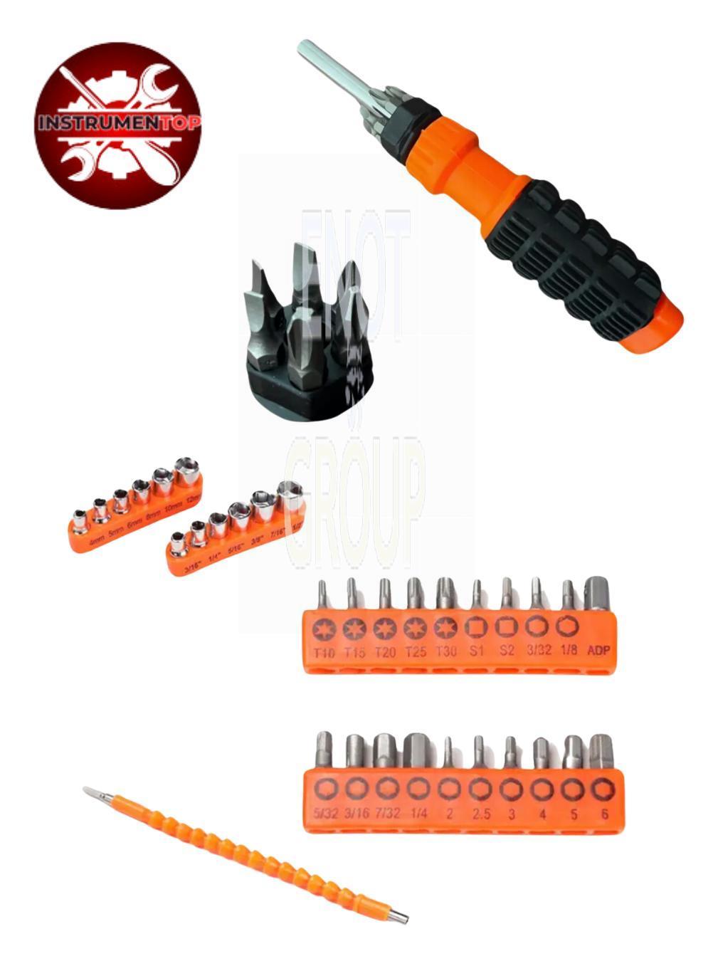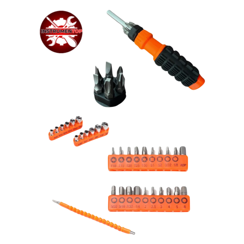 1. Широкий вибір біт та головок: Набір включає 43 різноманітні біти та головки, що забезпечують максимальну універсальність для роботи з різними видами кріплень. Ви зможете легко і швидко виконувати будь-які завдання, від складання меблів до ремонту техніки.