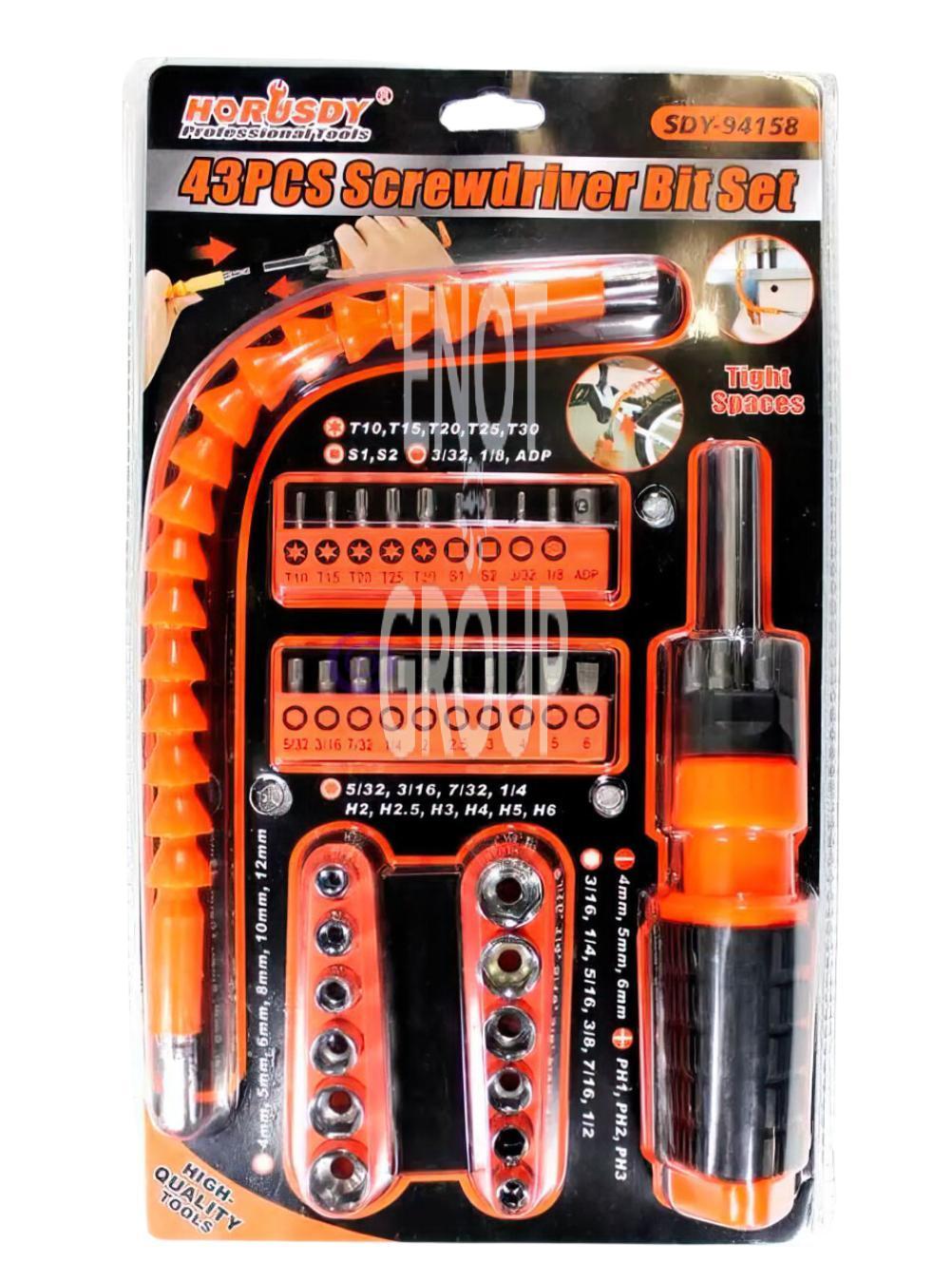 Вікрутка з набором біт та головок у блістері на 43 предмети – універсальний набір для кожного майстра