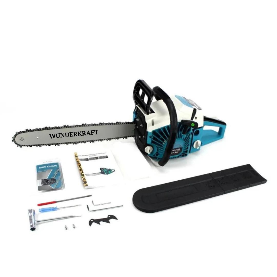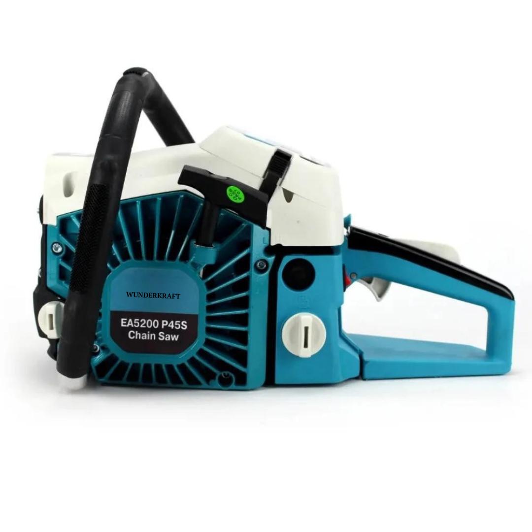 Бензопила WunderKraft EA5200 P45S призначена для тих, кому потрібен інструмент з високою продуктивністю та надійністю. Її двотактний двигун об’ємом 52 см³ (≈2,4 кВт / 4,8 к.с.) легко впорається з товстими колодами чи доглядом за деревами, водночас залишаючись економічною щодо витрати палива. Удосконалена антивібраційна система, автоматичне змащення ланцюга і міцний корпус гарантують комфортну й безпечну роботу навіть при інтенсивному використанні.